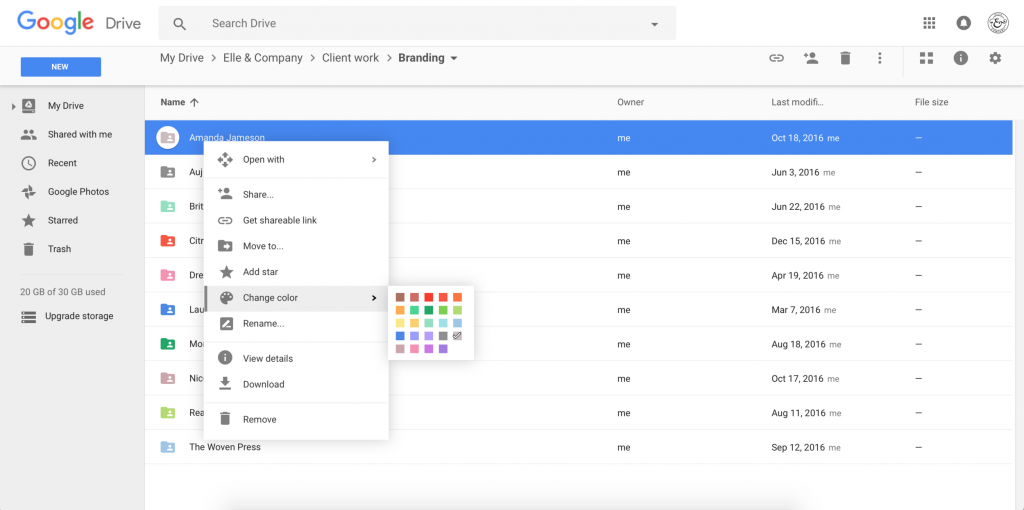 Vous pouvez également utiliser des couleurs pour vos dossiers afin de les rendre plus reconnaissables.